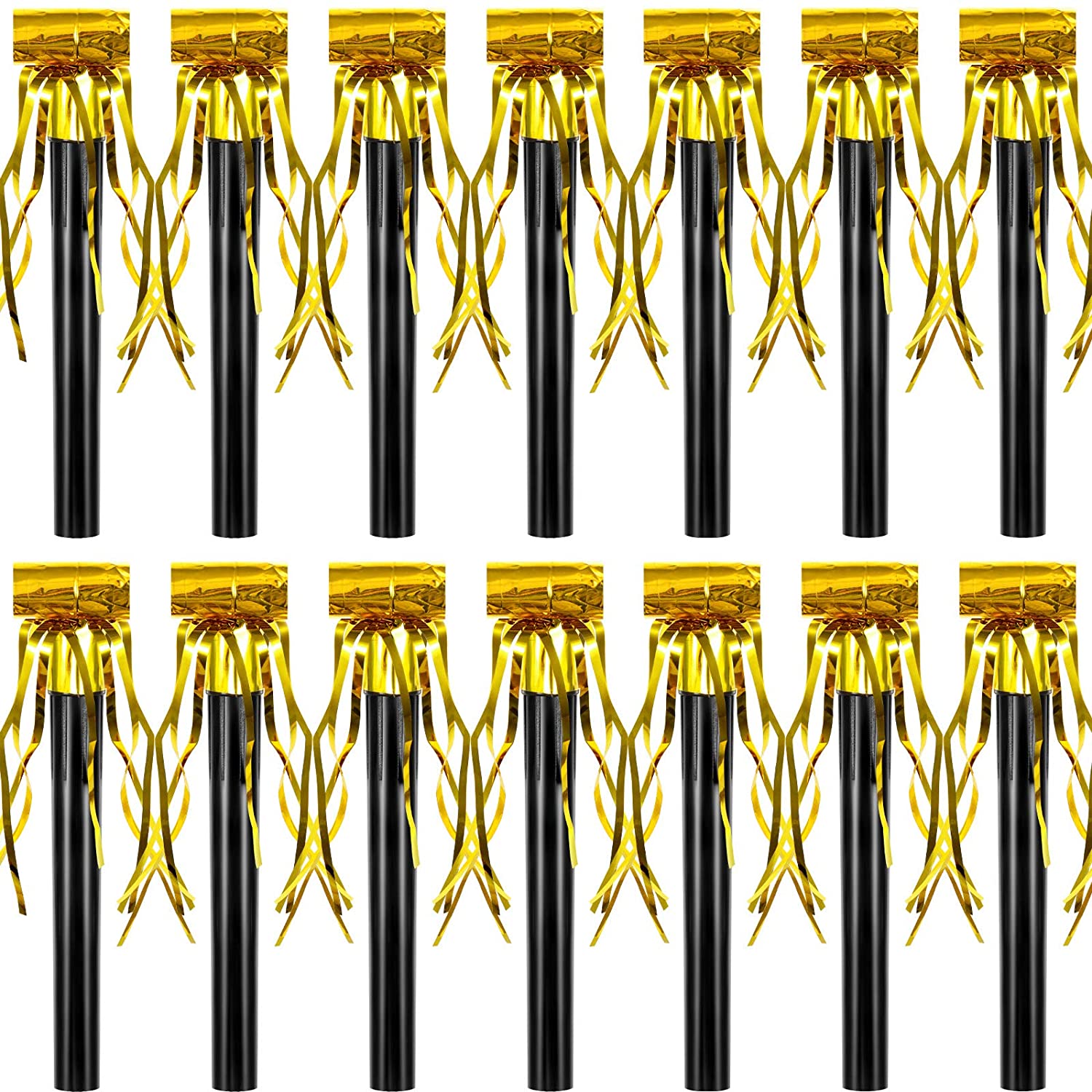 Features:Lightweight and portable: These musical blowouts whistles are light in weight, and comfortable to grip by hands, designed in proper size, convenient for carrying and storing in bags and pockets.Reliable material:Using quality plastic as material, the party squawkers are durable for long time of use, not east to break, non-toxic for safe use, proper for creating funny and interesting noise for your party event, helpful to catch more peoples attention for you.Wide applications:You can apply the fringed whistles for decorating New Year party, Christmas party, birthday party, baby shower, bridal shower, celebration, and so on. You can also send them as gift to family members and friends.Add more fun for party:These party blower noisemakers can vibrate furiously and quickly, form interesting sounds to product joyful visual effect, while adding more fun and livening up atmosphere to street party, sport game, gathering event, school activities and more.Specifications:Size: approx. 5.3 inches in lengthColor: as the picture shownMaterial: plasticPackage includes: 18 x Glitter fringed noise makers Notes:Manual measurement, please allow slight errors on size.The colors may exist slight difference due to different screens.Suitable for people over 12 years old.