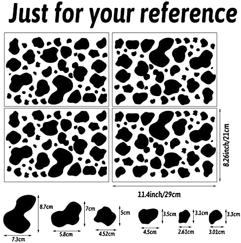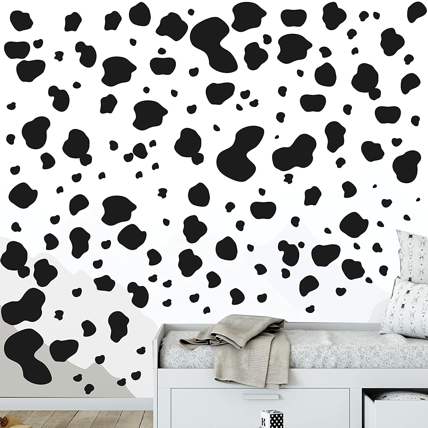 184 Pieces Cow Print Decor, Adhesive Cow Print Stickers Cow Print Vinyl Wall Art Decal Removable Cow Print Wall Decor Waterproof Animal Design Cow Decals for Walls Bedroom Living Room Nursery, Black