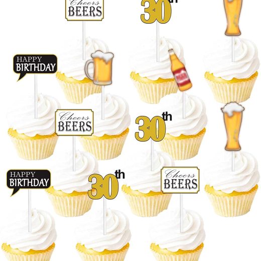 18PCS Beer Mug Bottles Birthday Cupcake Topper Picks for Men Women 30th Happy Birthday Party Cheers and Beers Theme Party Decoration Supplies Cheer to 30 Gold Glitter