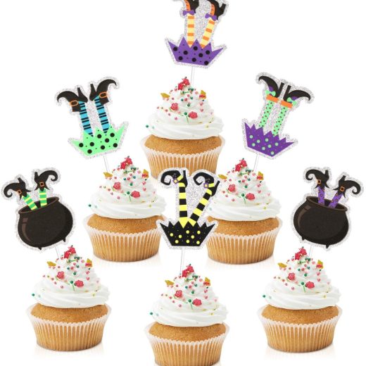 18pcs Witch Cupcake Toppers – Halloween Party Glitter Witch Leg Dessert Food Picks – Birthday Witch Feet Party Cake Supplies Decorations