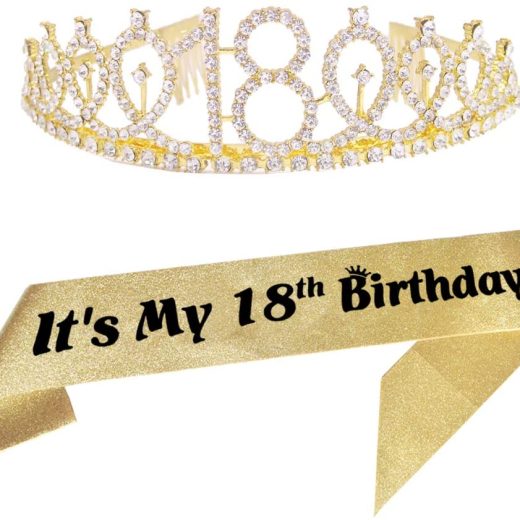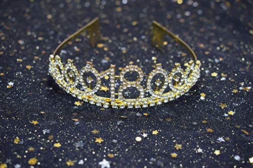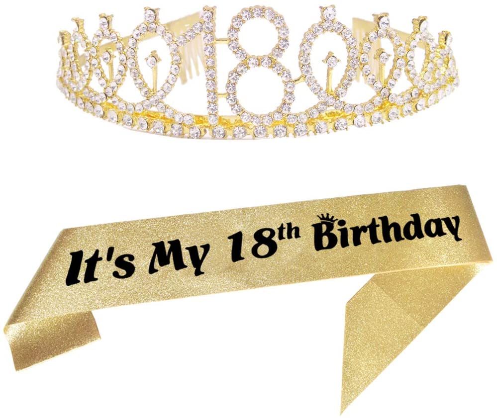 18th Gold Birthday Tiara and Sash Happy 18th Birthday Party Supplies 18th Gold Birthday Glitter Satin Sash and Crystal Tiara Princess Birthday Crown for Girls 18th Birthday Party Decorations