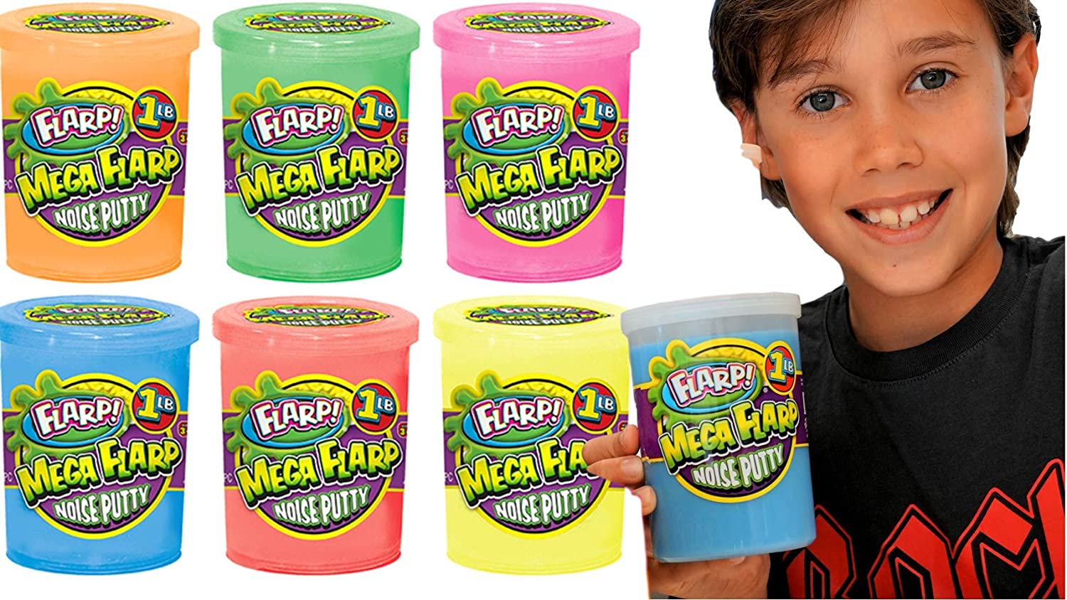 6 Units with Display Box Assorted Color of Mega Flarp Putty 1 Lb (1 Pound) Sound Making Fluffy Slime and Scented. Assorted Neon Colors Toys for Kids NEW! Flarp Quality! . Fun farrt noise-making putty in a container. Great Easter Basket Stuffers. ORIGINAL Great Smelling Lime, Orange, Strawberry, Grape, Lemon, Berry! FLARP BY JA-RU. Squish the Putty to make a loud farrt noise. Assorted Colors in Yellow, Blue, Red, Pink, Orange and Green. Plus 1 Exclusive Collectible Bouncy Ball by JA-RU. With store away Plastic container. Scented with Great Smelling Aromas. Stress Relief and Release, Calming, Relaxing, Focus, Concentration, Autism, Anxiety, Sensory toys, Church, Memorial Day Sale, Independence, Classroom Box, Easter Basket, Party Planner Supplies, Treasure Chest Box, For Children Kids boys or Girls & Adults. USA JA-RU. ASTM Tested. Top Quality & Safety. Party Favor, Giveaways, Prizes, Goodies, Stocking Stuffers, Rewards, Incentives, Pinata Filler, Birthday Bag, Reward, Party Pack Toys, Christmas Halloween, Valentines, Summer Camps, Add, ADHD. Cool Stuff Toys in Bulk.