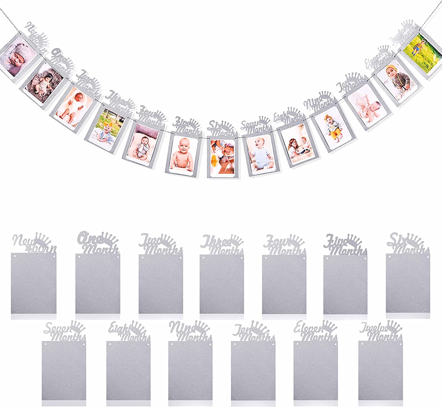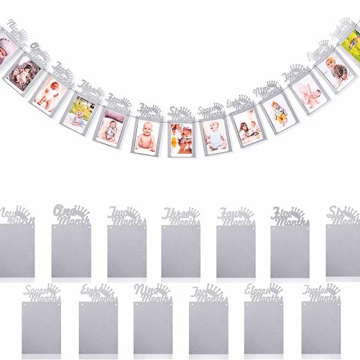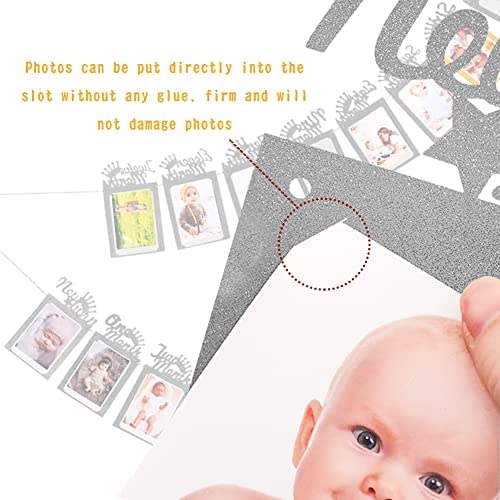 1st Birthday Baby Photo Banner for Newborn to 12 Months – Monthly Milestone Photo Bunting Garland, First Birthday Celebration Decoration,1 Year Old Celebration Decorations to Document Baby Growth (Silver)