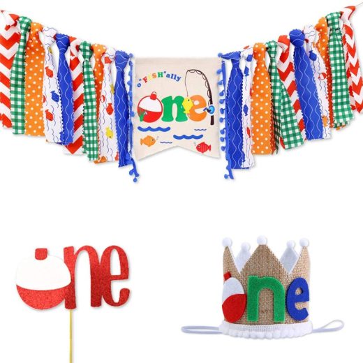1st Birthday Decoration One Banner,Fishing Birthday Party Supplies Banner and One Cake Topper One Hat,1st Birthday Banner For Baby Shower