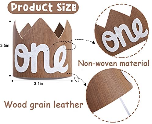 WOODEN CROWN – This mini crown is suitable for any party of your choice, the 1st birthday boy cake smash, celebrate your childs important milestone with our sweet mini wooden crown, decorated with non-woven fabric one. This neutral crown is the perfect smash cake photo prop for your birthday boy or girl! SIZE AND PRODUCTION -The crown is 3 inches high and 3.25 inches in diameter. There is an elastic elastic band at the bottom, which is convenient for you to fix behind the baby’s ears, and the two ends of the crown are made of velcro for you to fix SUITABLE FOR THE SCENE – Our mini wooden crown is suitable for all ages and any occasion! Can be used for parties, showers, taking pictures, dressing up, or just because! Each crown is carefully hand-made with high-quality wood grain leather, and is protected by high-quality opp transparent plastic bags. AN INDISPENSABLE BIRTHDAY – Baby’s first birthday, only once. You will definitely have a unique birthday party for your baby and leave a beautiful photo. This wooden crown is best for your baby, as the best Photo decoration. NO RISK PURCHASE – WAOUH is a reliable and professional manufacture of birthday supplies who is committed to bringing a wonderful and memorable birthday for your little kids. feel free to contact us if there is an issue with our birthday decorations kit and we’ll solve your problems within 24h.