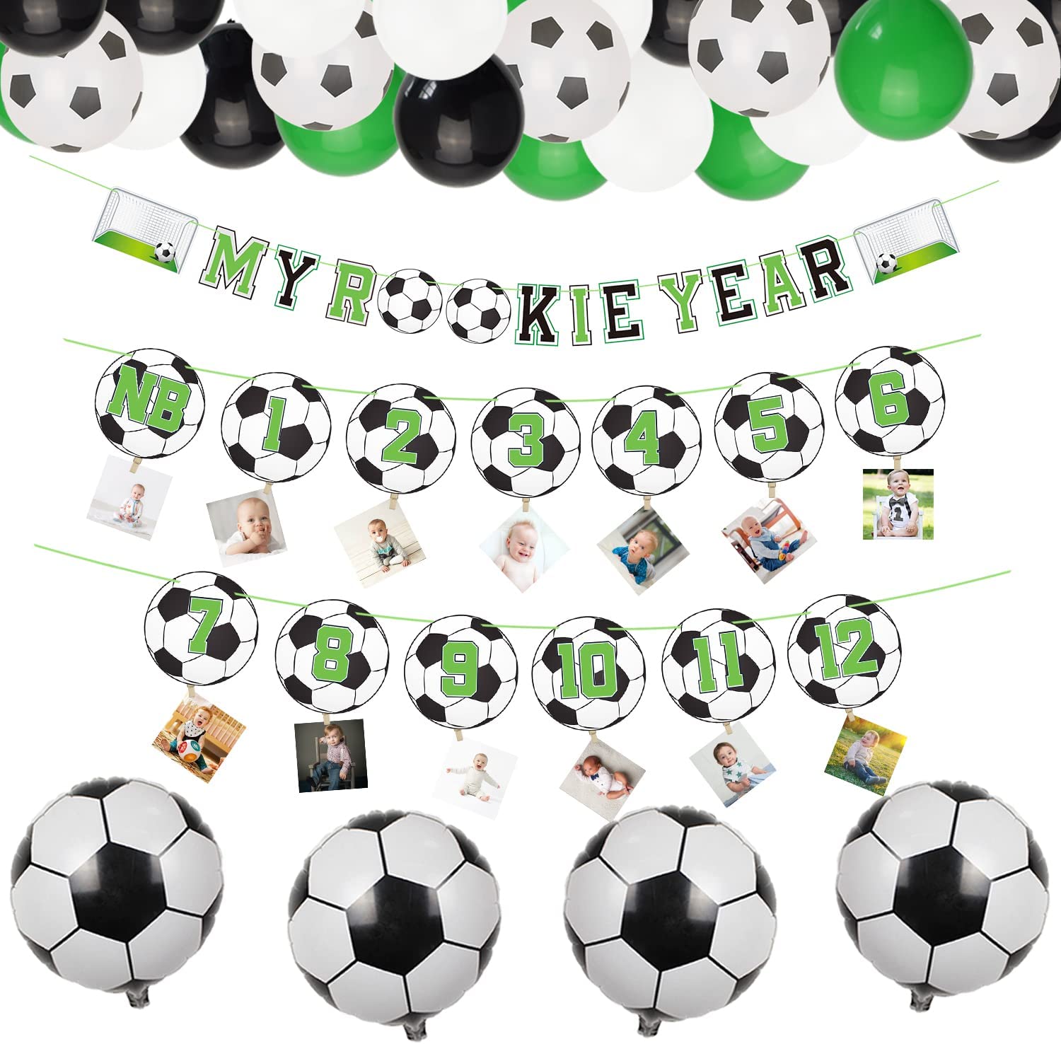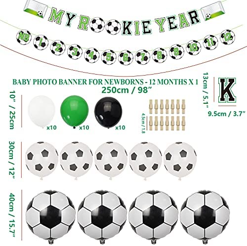 1st Soccer Birthday Party Decorations, MY ROOKIE YEAR Birthday Banner Decorations, First Photo Banner and 39 Pcs Balloons for Baby Shower, 1st Birthday Soccer Themed Party