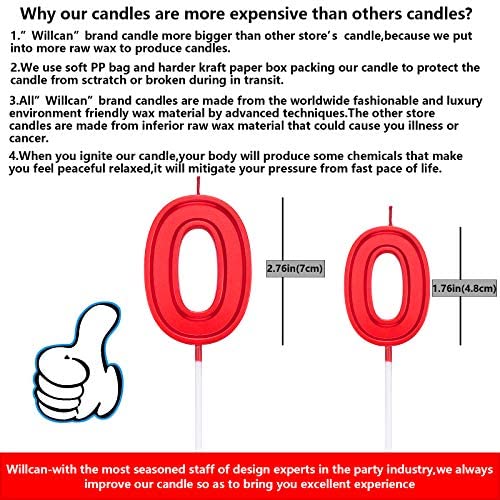 Willcan Color Bright Red Material Wax candle Occasion Birthday Size 2.75in Number 0 Item Weight 10 Grams Special Feature Smokeless, Non Toxic Item …