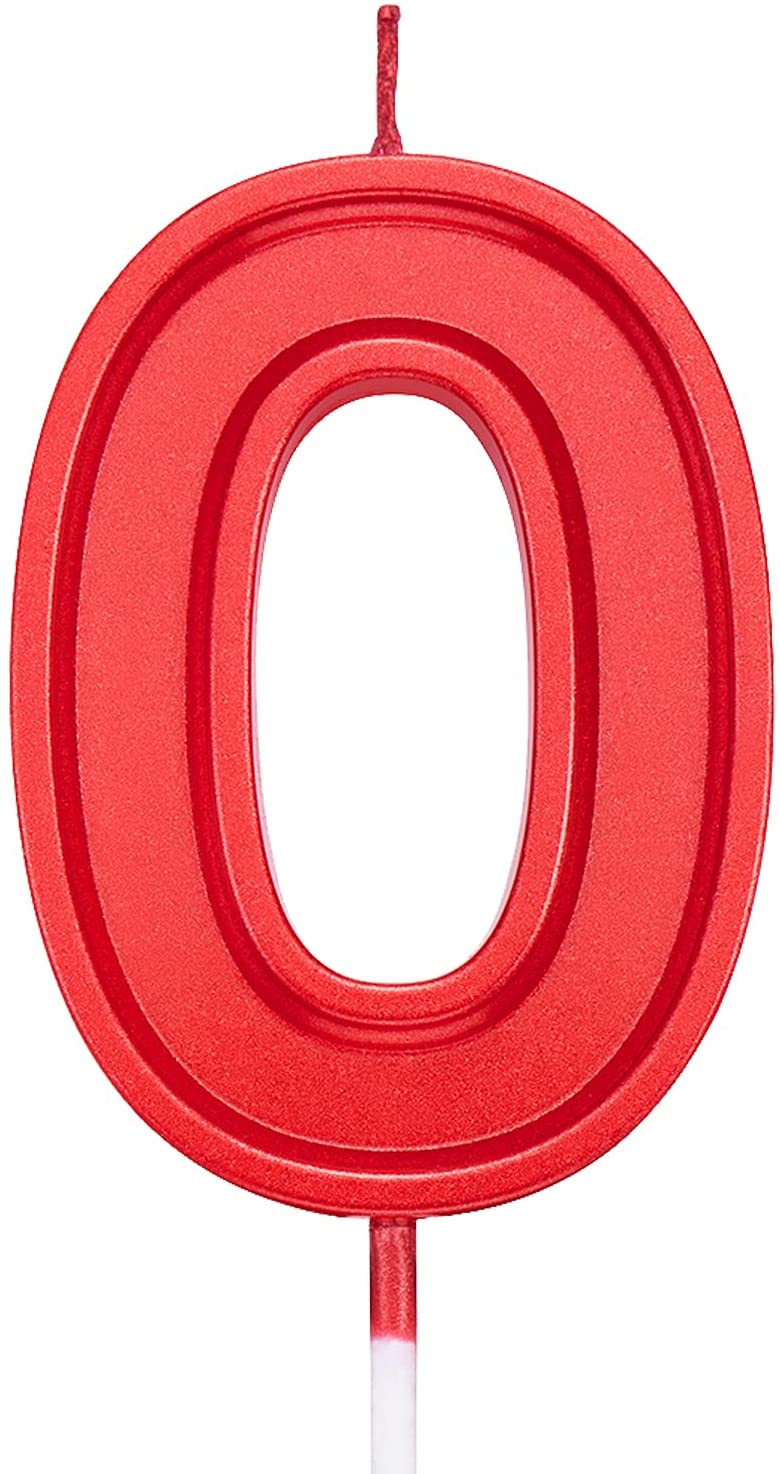 2.75in Tall Bright Red Number 0 Birthday Candles, Glitter Red Happy Birthday Cake Cupcake Toppers Decoration and Celebrating for Adults/Kids Party Baking (Bright Red 2.75in Number 0)
