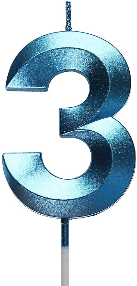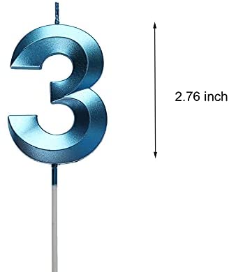2.76 inch Blue 3 Birthday Candles,3D Number 3rd Cake Topper for Birthday Decorations No 31 32 33 34 35 36 37 38 39