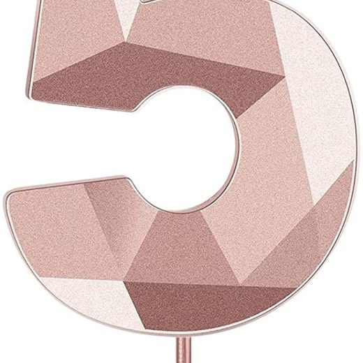 2.76 Inches Birthday Cake Number Candle, 3D Diamond Shape Glitter Numeral Topper Decoration for Wedding Anniversary, Home Baking,Kids and Adults Birthday Party Celebration (Rose Gold, 5)