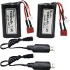 2 Pack 7.4V 1500mAh 15C Li-ion Rechargeable Battery with Deans T Plug Connector and Charger Cable for 9155 and 9156 1:12 Scale High Speed RC Truck 9156 Battery 2