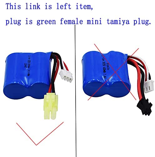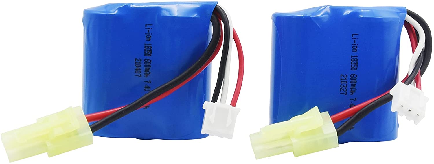 2 Pack 7.4V 600mAh Lithium-ion Battery with Male Mini Tamiya Plug Fit for Force1 Velocity H102 and SKYTECH TKKJ H106 H110 H112 RC Truck H110 Battery 2