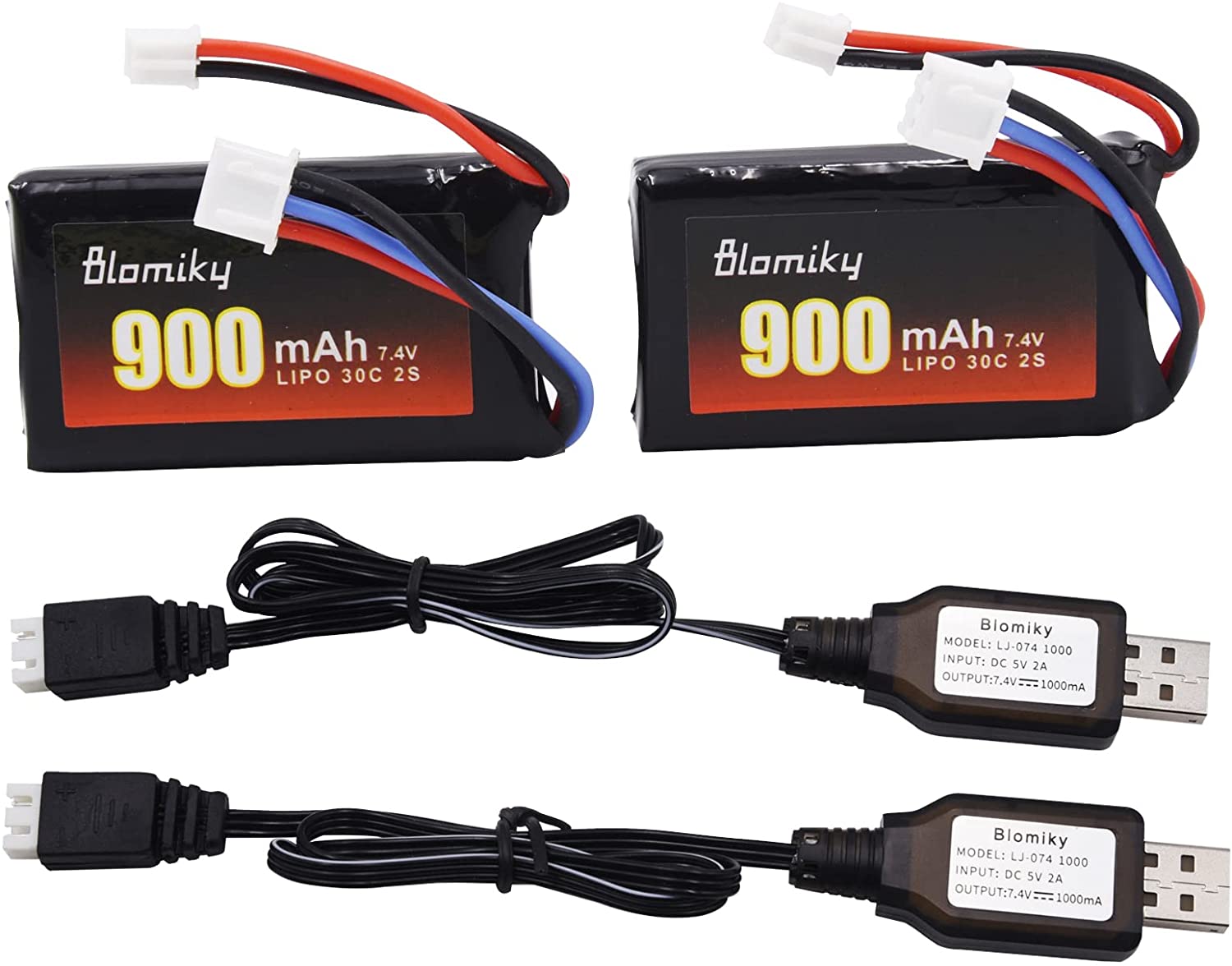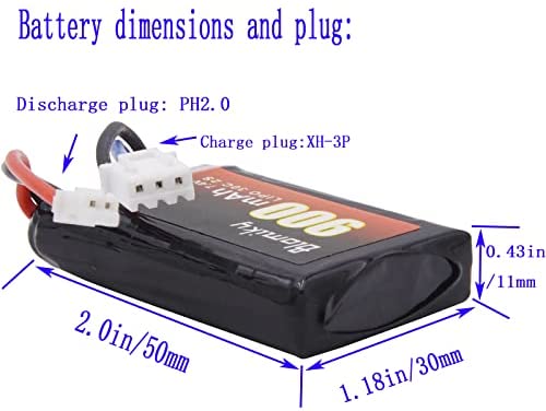 2 Pack 7.4V 900mAh Lipo Rechargeable Battery with PH2.0 Plug and Charger Cable for SCX24 Remote Control RC Truck SCX24 Battery 2