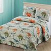 2 pc Twin Size Quilt Bedspread Kids/Teens Boys Dinosaurs Army Green Blue Orange Multicolor Bedding New