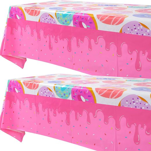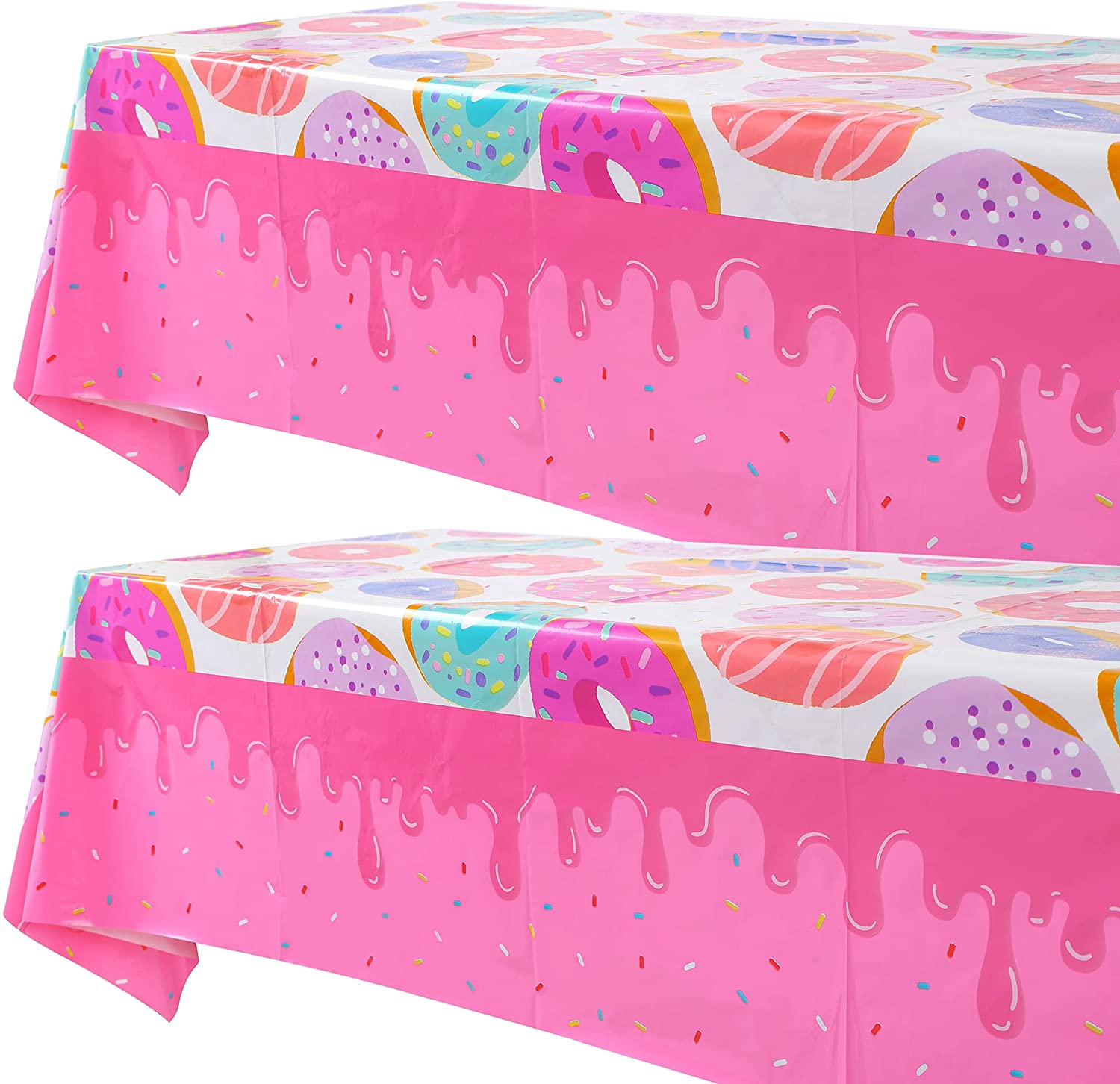 2 Pcs Donut Party Table Covers Rectangle Plastic Donuts Grow Up Theme Baby Shower Girl Birthday Party Supplies Decor Pink