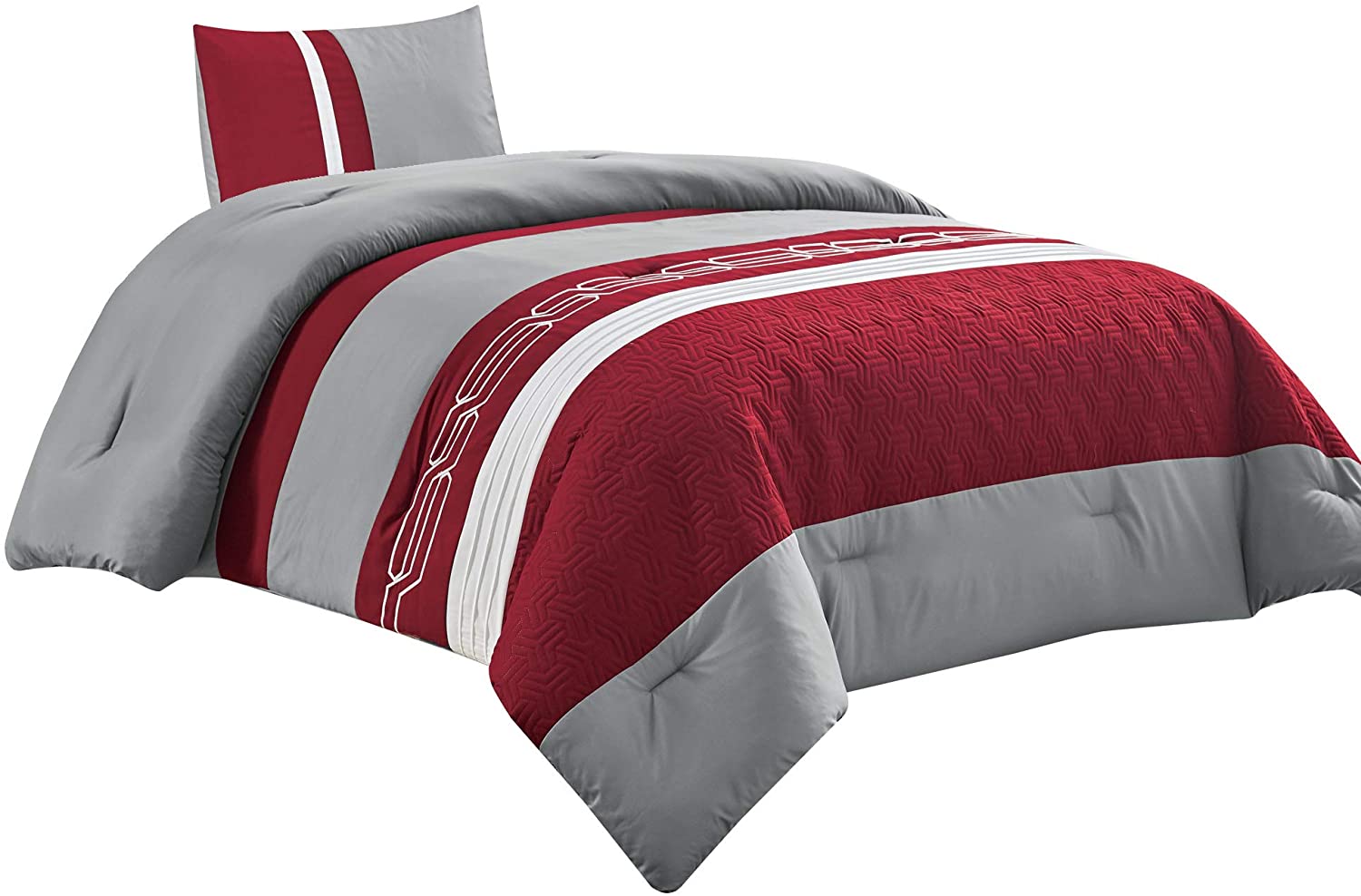 2 Piece Dark Burgundy Grey Down Alternative Comforter Set Twin Size Bedding Includes Comforter and Pillow Sham for Kids/Girls/Teens bedroom dorm room- LOLA(Burgundy/Grey, Twin)