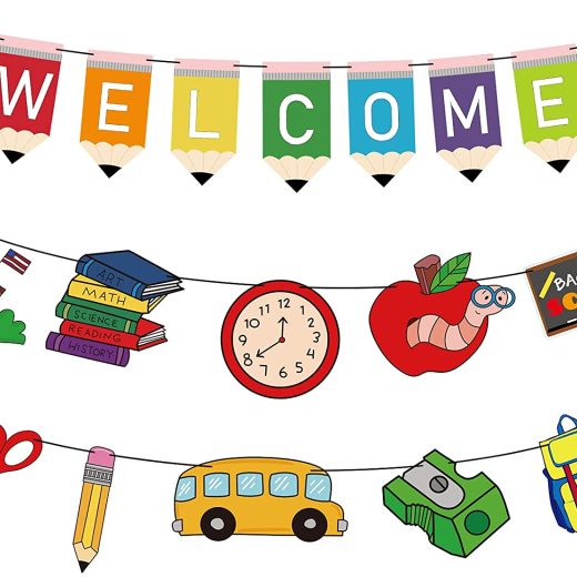 2 Pieces Back to School Banner Decorations for Classroom First Day of School Decorations Welcome Garland Banner Back to School Party Decoration Classroom Office Banner Props