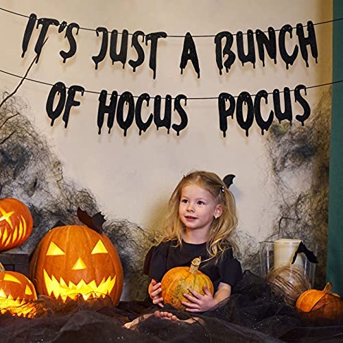 2 Pieces Halloween Black Glittery Banner Hocus Pocus Banner Halloween Party Hanging Decoration Indoor Outdoor Paper Glitter Banner for Home Halloween Theme Party Supplies Garden Decor