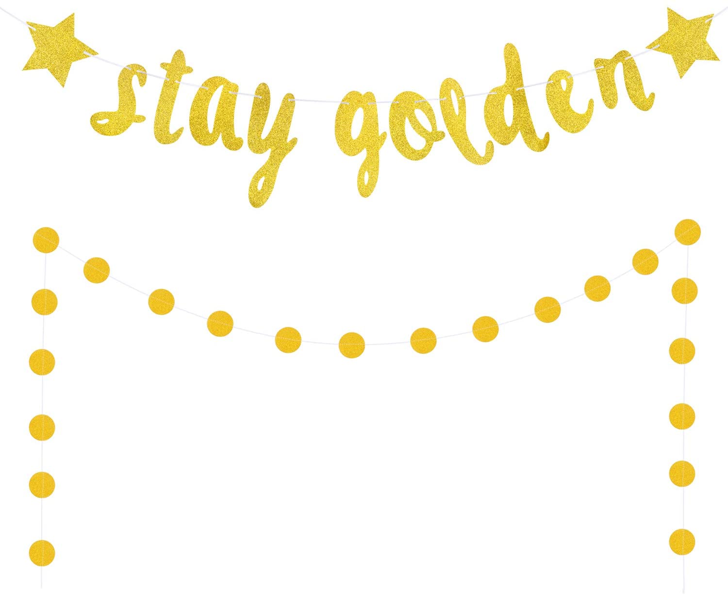 2 Pieces Stay Golden Banner Glitter Gold Lucky Birthday Banner Circle Dot Hanging Garland for Birthday Baby Shower Party Decoration Supplies