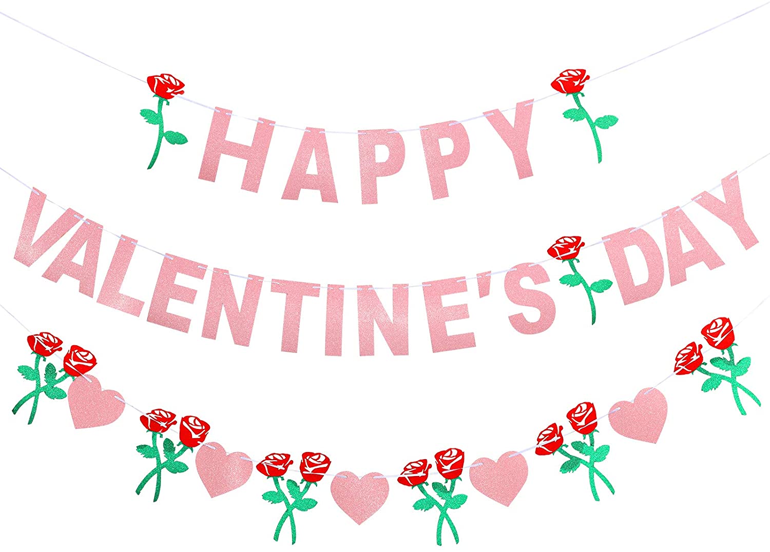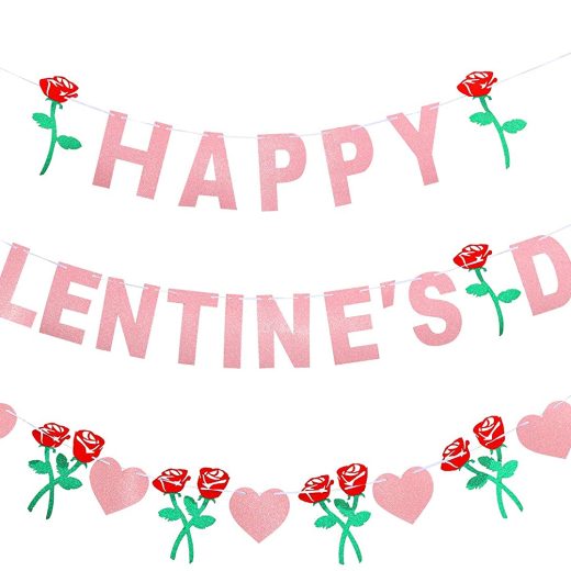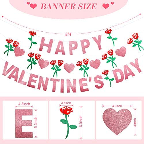 Features:Nice design: The Valentines Day burlap banner is design with romantic Valentines Day elements. Printed with pink glittery letters and heart-shaped patterns, coupled with red glittery roses, the Valentines Day garland banner adds a touch of romance and sentiment to your party. Those glittery pink and red garland banners are nicely matched, and the hanging is very beautiful and harmonious.Wide uses:The Valentines Day hanging banner will be the most romantic decorations for home, store, shopping mall, window display, party decoration in Valentines Day, fitting for Valentines Day party, Valentines Day theme birthday, Valentines Day theme school activity and so on.Specification:Material: glitter paperboardColor: as the pictures shown Quantity: 2 pieces in totalPackage included: 1 x Glittery happy Valentines Day banner1 x Heart and red Rose glittery BannerNote: Please allow 1 – 2 mm error due to the hand measurement.