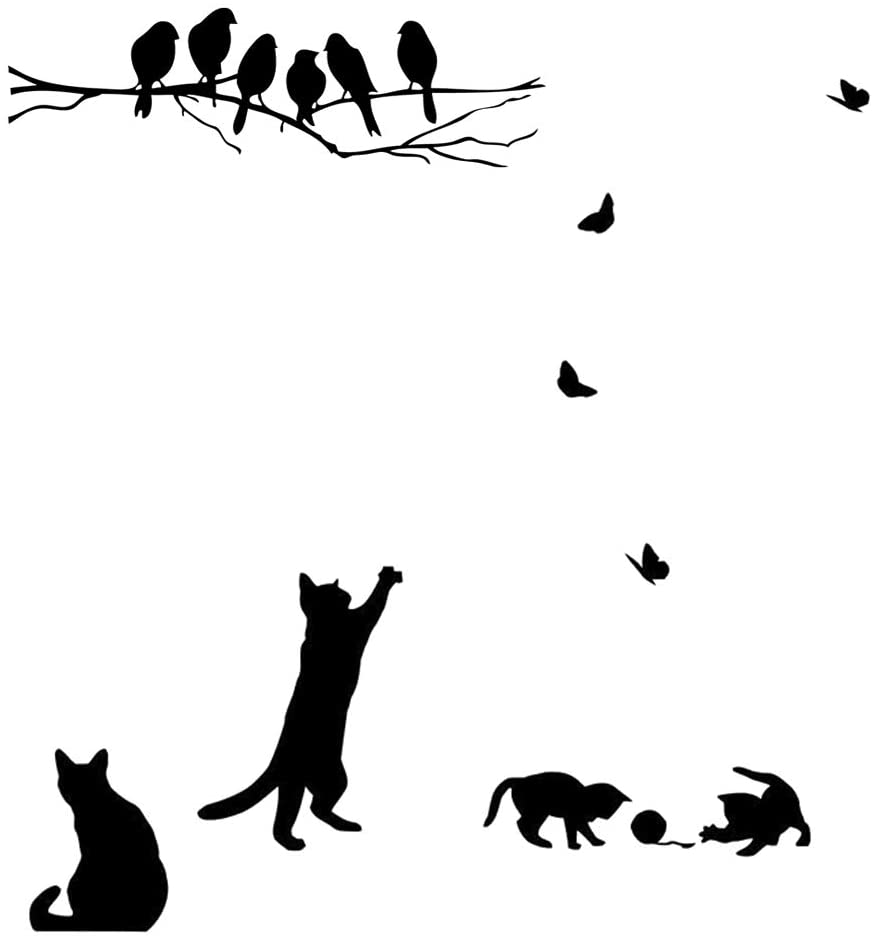 2 Sets Wall Decor Stickers, Black Cat and Tree Branches Birds Wall Art Decals, DIY Wallpaper Mural Home Decoration for Living Room, Bedroom, Farmhouse Decor