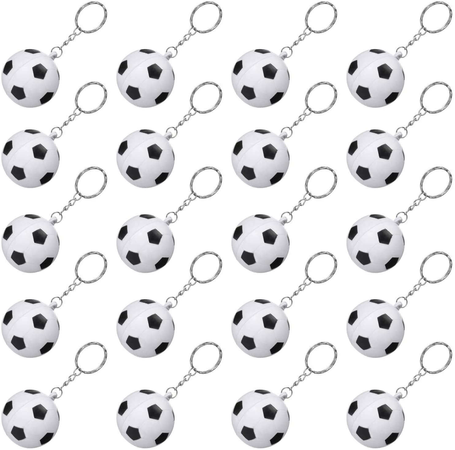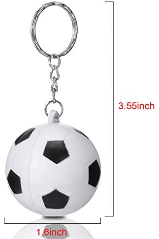 Abundant quantity : 20 pieces white soccer ball Keychains, look like as a real soccer as possible, made of elastic foam, can keep the shape well easily no matter how you bend them Cute size : each one measures 3.55 inches long totally (included key ring), and the size of soccer is 4 x 4 cm, match with durable metal split key rings, the ring to collect the soccer is thin material, avoid pulling the key ring and soccer at the same time Ways of using : they can be applied for party favors, a great school carnival prize for teachers and students, these key chains add flair to any party table setting as decorations or as a sports centerpiece, welcomed by sports fans and Super Bow Act as a toy : take away the key ring and left the soccer alone, act as a toy for student to play with them, both elastic and shapes easily attract childrens interest, can attach to backpacks every day; Suit to the children over 12 Nice giving gifts: the keychains are suitable for adults, and the soccer cater to student, share with your friends as a nice giving gift, you can bend the soft foam by relieving pressure