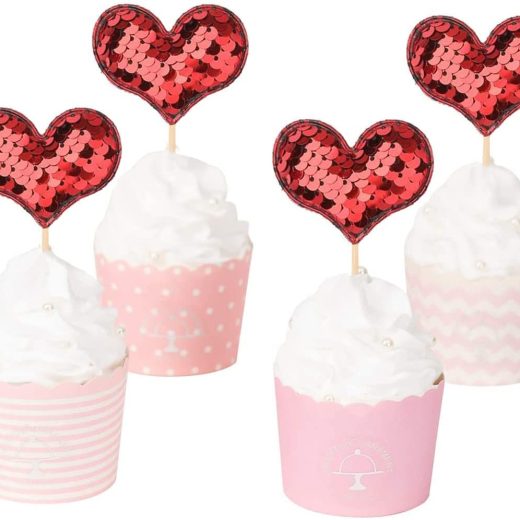 20 pcs red heart cupcake topper Shiny Fish Scale Sequins Cake Topper Decoration for Sweet Love Theme Wedding Engagement,Valentines Day Bridal Shower Party Cake Decors (20pcs Red heart)