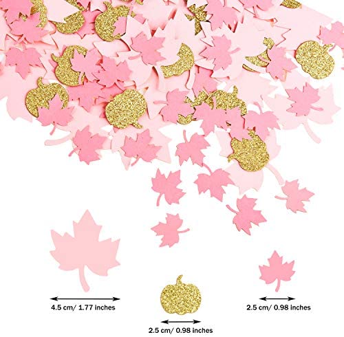 3 Size: our glitter pumpkin confetti measures approx. 2.5 cm/ 0.98 inches in width, pink maple leaf confetti measures approx. 2.5 cm/ 0.98 inches i…
