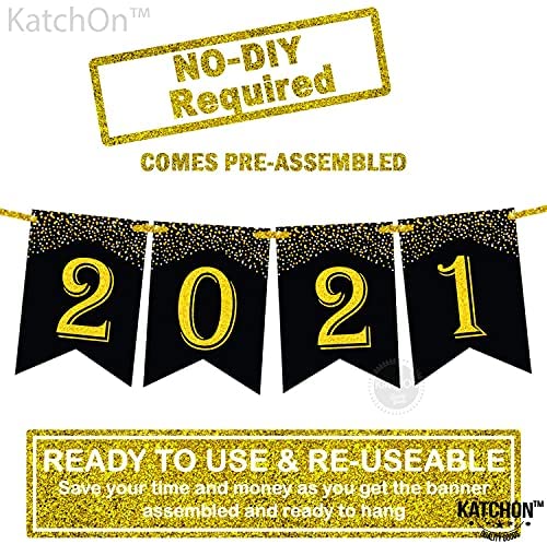 SHINY FOIL BLACK AND GOLD GLITTER BANNER – Planning a fabulous graduation party for family and friends This beautiful 2021 banner will create a sparkling and classy effect at your party which surely your guests will love. Make your party stand out with this black and gold graduation decorations 2021. NO DIY REQUIRED | PRE-STRUNG | READY-TO-USE – This 2021 Sign Banner can be decorated with ease as there is no DIY Required and can be attached and detached easily from your walls and backdrops. The total banner length is 6 Feet long. The graduation decorations black and gold is made with high quality card stock material. So think – no more to buy our new congrats grad banner party decor REUSABLE | BUY WITH CONFIDENCE | 100% SATISFACTION – You can buy our Graduation Decorations 2021 Black and Gold with confidence as it will definitely serve the purpose. We guarantee you will be 100 % satisfied with this durable, re- usable and incredible style of our prom sign 2021. Our main objective and concern is your satisfaction so we personally made sure that the materials we used in this graduation banner are made with Grade ‘A’ Quality. MULTIPLE DECORATIVE GRADUATION IDEAS – This Class Of 2021 Banner add-on is a hassle free. The gold and black graduation 2021 decorations can work great as a greeting banner at entrance way or as a complement for backdrop. You can also hang this 2021 banner outside in the garden or as a welcoming sign for the guests. PICTURE-PERFECT | STYLISH TRENDY GRAD DAY DECORATIONS – Show off your decorative skills with this elegant, perfect reusable Happy Graduation 2021 Party Decorations. Click numerous instagram pictures with your friends and let the world know that you had an unforgettable 2021 graduation decorations black and gold