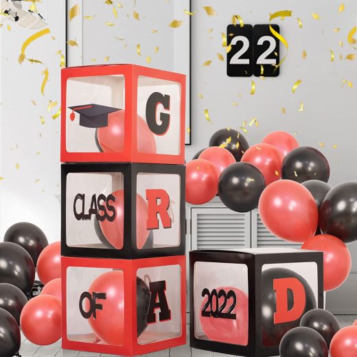 2022 Graduation Party Decorations 4pcs Red Black Balloon Boxes with u201cGRADu201du201dSo proud of youu201du201dClass of 2022u201d Letter to Decorate and 20pcs Black Red Balloons for Class of 2022 College High School 8th Grad Party Decorations supplies