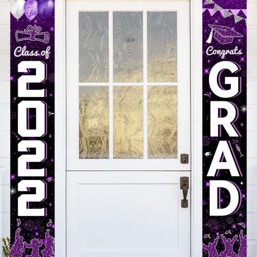 2022 Graduation Party Supplies-Class of 2022 Grad Porch Sign Banner,Door Hanging Welcome Banner for Congrats Graduation Party Decoration (Purple)