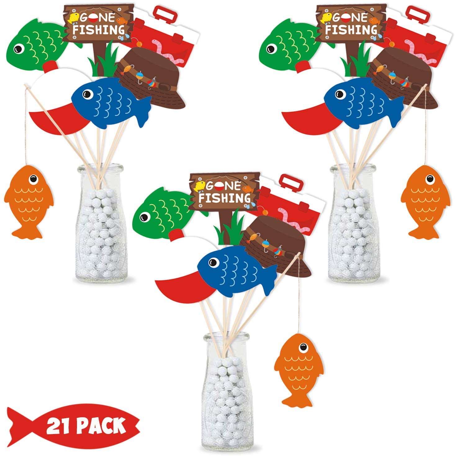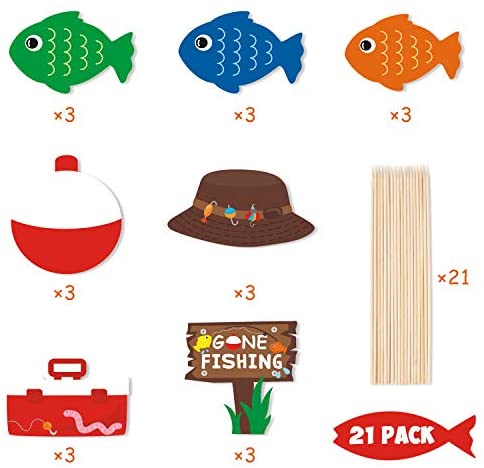 21 Pack Gone Fishing Theme Little Fisherman The Big One Party Centerpiece Sticks Bobber Table Toppers Kids Fishes Reel Fun Birthday Ideas Photo Props Decorations
