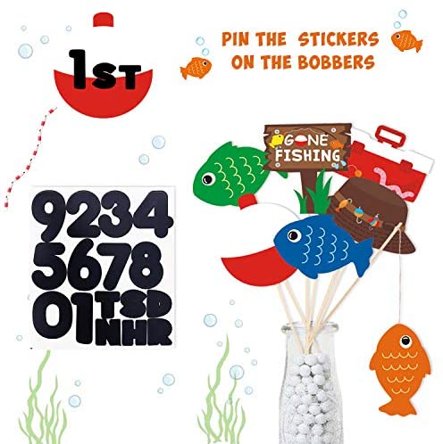 Gone Fishing Theme Dessert Table Decorations-Package contents 21 pack gone fishing theme table toppers in 7 different shapes with the wooden sticks and number stickers. Lets hold a fishes party and add some aquatic fun to your summer. Perfect Size And Easy To Decor-Each table topper piece is about 6 tall x 5 wide, wooden sticks are 12 long, the number stickers were designed to match the bobbers, they can be easily set up into vases, jars or floral arrangements as a centerpiece on the party table. Either way, you will get a lot of compliments from your guests. Great Quality And Eye-Catching Designs -Gone fishing table toppers are made of quality-thick paper cardstock, with the adorable and vibrant patterns printed on both sides, these dessert table toppers centerpieces which will level up your amazing decorating ideas. A Reel Fun Summer Party Favors Supplies-These table toppers can be used as fishing party cutouts, photo props, or table centerpieces. Ideal for kids gone fishing birthday party, the big one party, little fisherman party, summer camping party, baby shower or other summer celebration events. Designed by Yaaasssss! Our fast delivery and good quality will make you satisfied. 100% refund service.