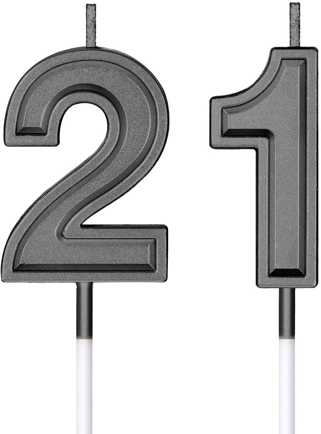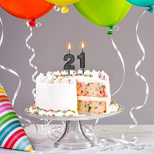 21st Birthday Candles Cake Numeral Candles Happy Birthday Cake Candles Topper Decoration for Birthday Wedding Anniversary Celebration Favor (Black)