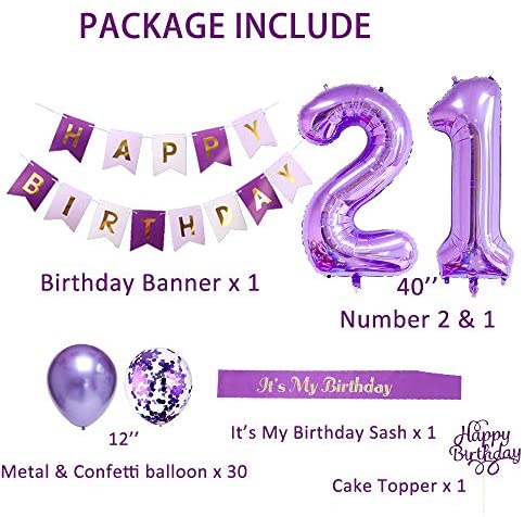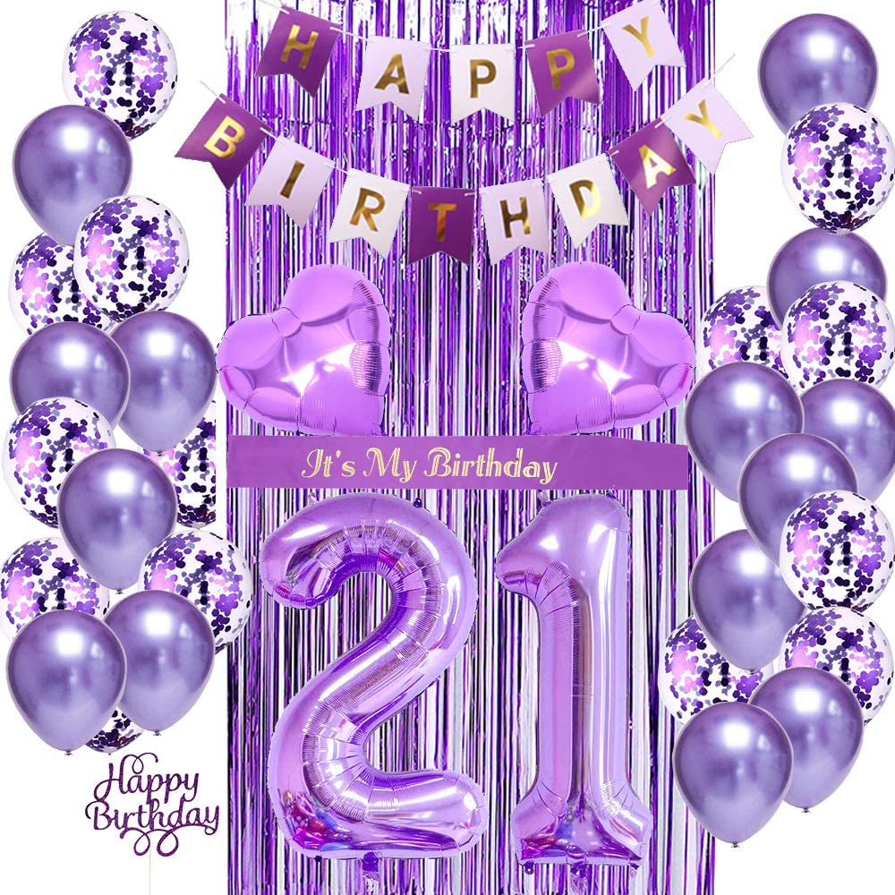 21st Birthday Decorations for Women 21st Birthday Balloons Purple 21st Birthday Decorations Purple Balloons Its My Birthday Sash Cake Topper Birthday Banner for 21st Birthday Decorations