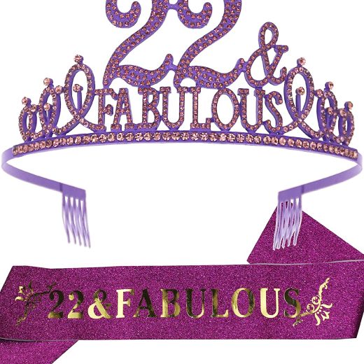 22nd Birthday Gifts for Women, 22nd Birthday Crown and Sash for Women, 22nd Birthday Decorations for Women, 22nd Birthday Party Favors, 22nd Birthday Tiaras for Women, 22 Birthday Party for Women