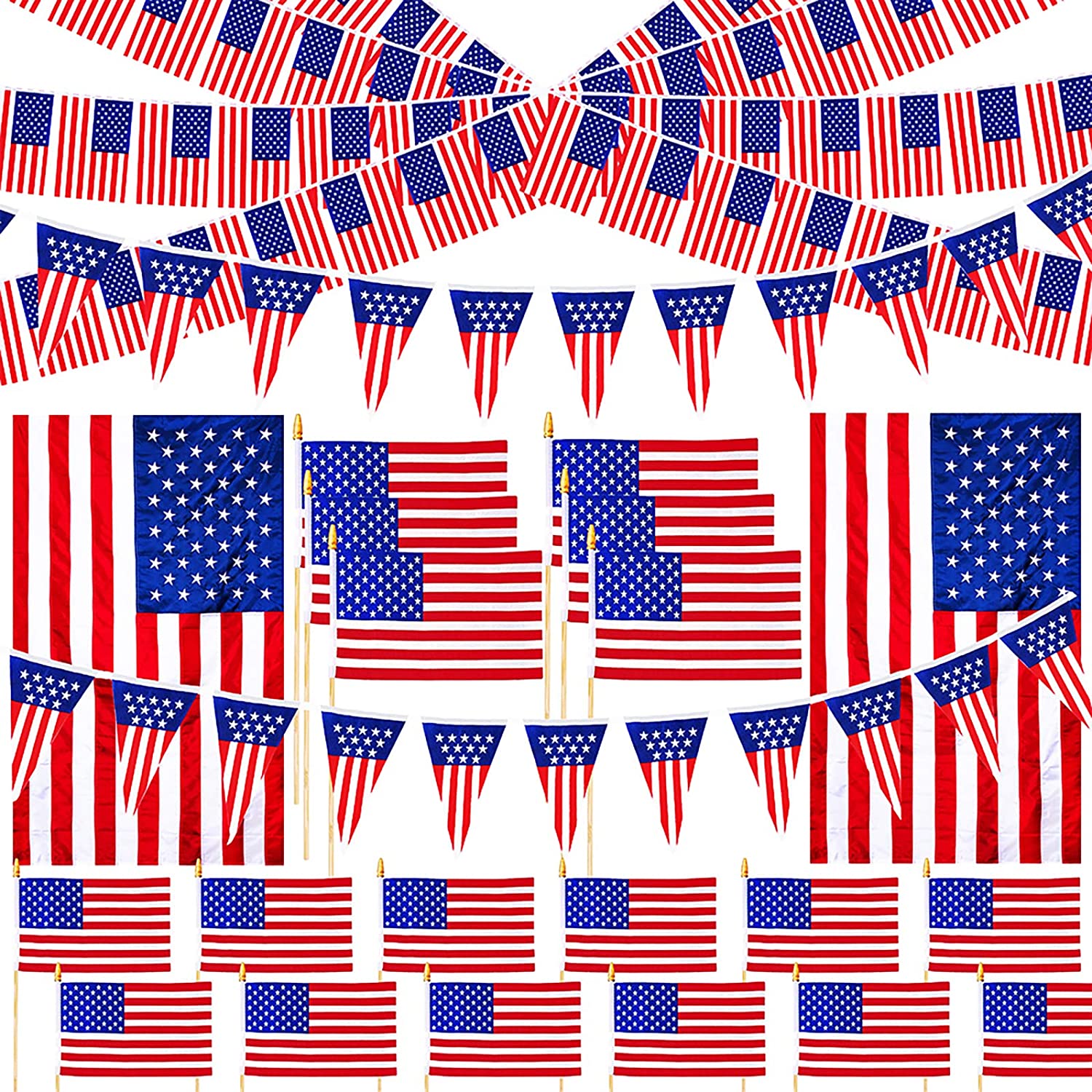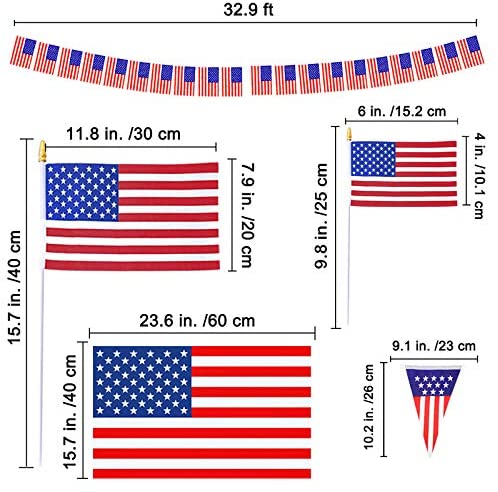 23 Pcs Assorted Patriotic American Flag Outdoor Decorating Kit USA American Flag Lawn Garden Flag on Sticks Plastic Flag Banner Pennant Banner for 4th of July Patriotic Party Parade Float Decorations