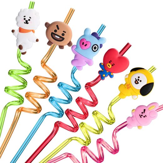 24 BTS Straws with 2 Cleaning Brush 6 Designs Great for Birthday as Party Favors and Party Supplies