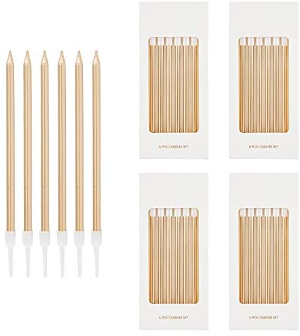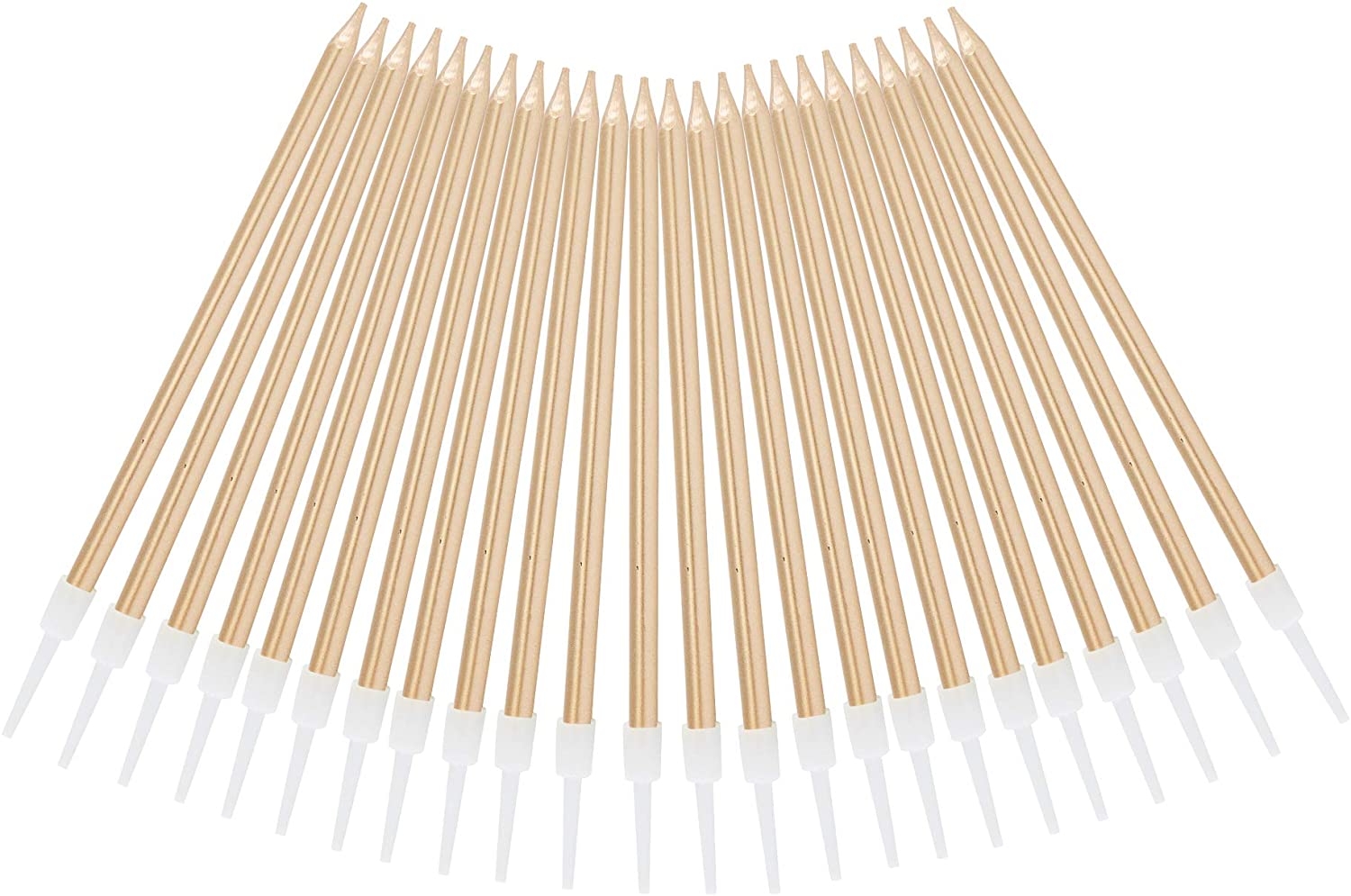 24 Count Metallic Birthday Candles Slow Burning Happy Birthday Cake Candles Long Thin Cake Cupcake Candle in Holders for Lucky Party, Wedding Party, Birthday Party Congregation (Champagne Gold)