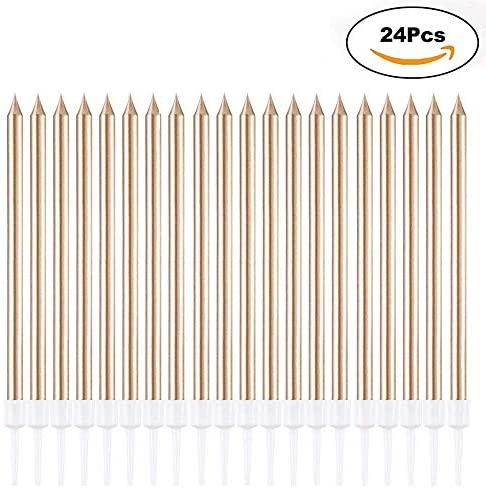 24 Count Party Long Thin Cake Candles Metallic Birthday Candles in Holders for Birthday Cakes Cupcake , Champagne Gold