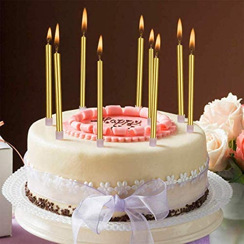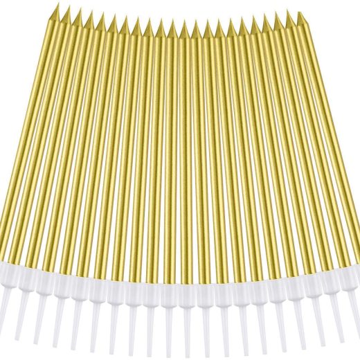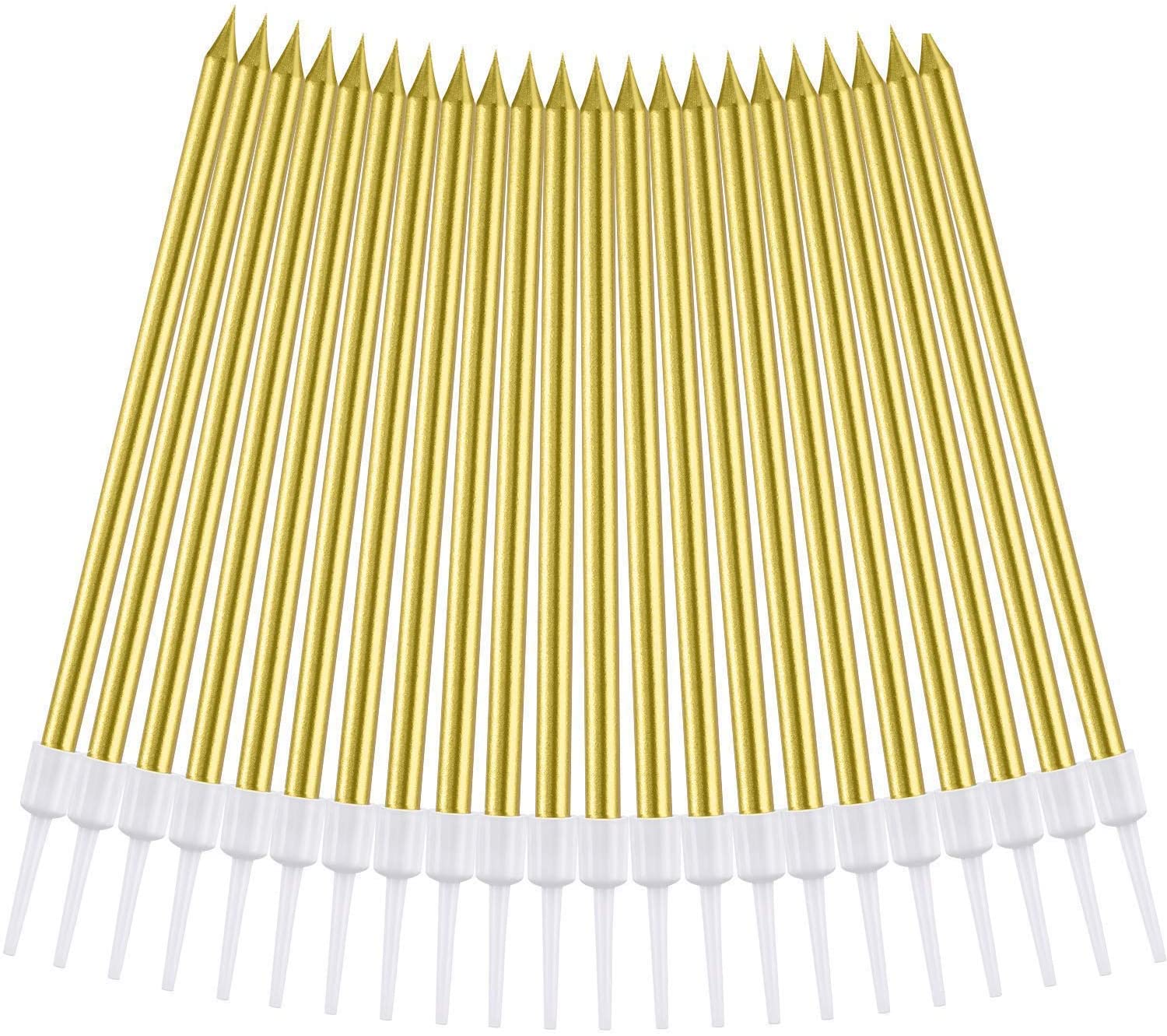 24 Count Party Long Thin Cake Candles Metallic Birthday Candles in Holders for Birthday Cakes Cupcake , Gold