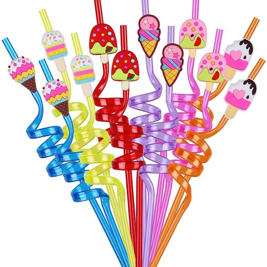 24 Pack Party Favors for Birthday Party Supplies – Ice Cream Straws for Birthday Party Favors Goody Bags Gift Bags, Reusable Plastic Ice Cream Drinking Straws for Birthday Party Baby Shower