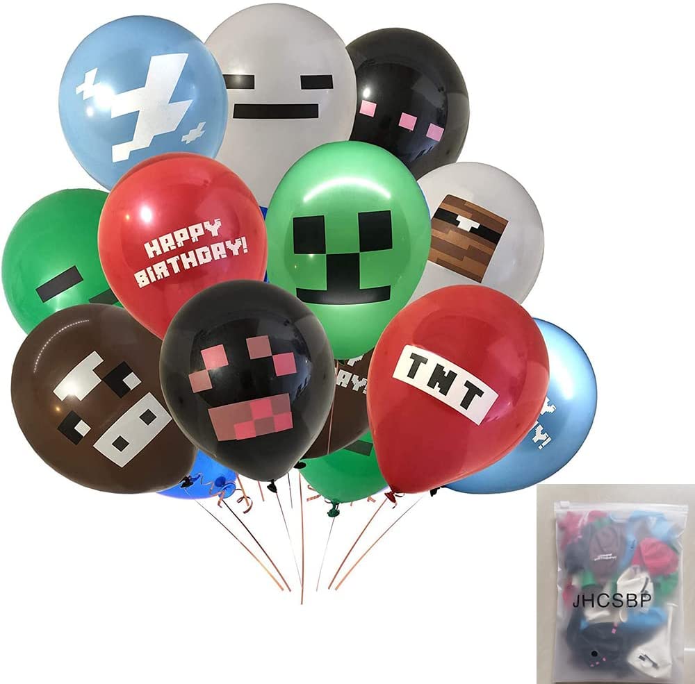 24 Pack Pixel Miner Crafting Style Gamer Birthday Party Balloons, Double Sided 12
