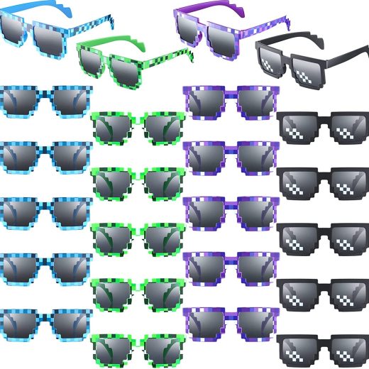 24 Pairs Pixel Sunglasses Party Sunglasses Retro Gamer Sunglasses Pixelated Eyewear Birthday Party Favors for Kids Adults (Black, Green, Blue, Purple)