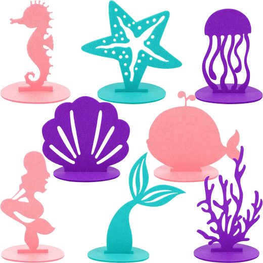 24 Pcs Ocean Mermaid Party Decoration DIY Felt Table Centerpieces Mermaid Birthday Decorations for Under The Sea Party Decorations Baby Shower Wedding Girls Boys Party DIY Favors, Blue, Pink, Purple