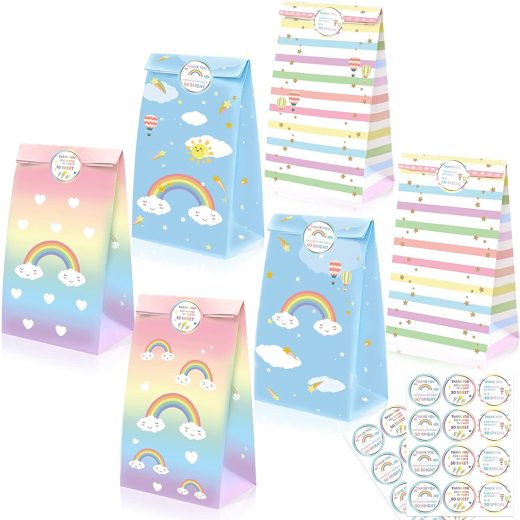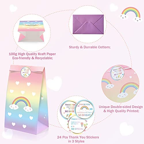 24 PCS Rainbow Candy Goodie Bags Rainbow Favor Bags, Pastel Rainbow Party Gift Treat Bags for Girls Unicorn Theme Birthday Party Supplies Baby Shower Party Decorations with Thank You Stickers for Kids