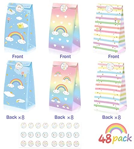 Rainbow Unicorn Party Decorations: Rainbow unicorn party bags includes 24 pcs rainbow goodie candy treat bags with 24 pcs unique thank you circle shape stickers. Our rainbow pastel party bags are designed for girls unicorn theme birthday party baby shower party with 6 different styles of bags and 6 different thank you stickers. Wherever they are placed, they are fantastic party decorations Wide Application: Our rainbow pastel candy bags are suitable for girls birthday party, unicorn theme party, girls baby shower party, princess party, wedding party, tea party, and art craft activities. Our rainbow candy bags can be used as girls birthday gifts, gift bags, goodie bags, treat bags, and party bags, different colors, and Styles can also facilitate your classificatio Premium Material & No Smell: Our pastel rainbow candy bags are made of recyclable, high-quality, thick kraft paper and printed with eco-friendly ink which means enough safe, sturdy, and durable. Kids can be used the rainbow party bags to hold any assorted knick-knacks, candy, toys Perfect Size: Our rainbow unicorn party candy bags dimensions are 8.7 x 3.1 x 4.7 inches, and this size is perfect for holding party favors, party gifts like candies, chocolates, treats, cookies, snacks, toys, etc. Pastel unicorn party bags are suitable for girls birthday party decorations and make your party wonderful Customer First & Quality First: PARTYAGE is committed to providing customers with the best party candy bags. Our rainbow party bags will be strictly inspected before shipment to ensure the good quality of each product. We provide with 100% refund service, if you have any questions, please feel free to contact us. Your satisfaction will be PARTYAGE lifelong pursuit