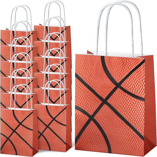 24 Pieces Basketball Party Favor Bags Basketball Present Goodie Bags Basketball Treat Candy Bags Sports Themed Paper Bags for Birthday Party Favors Supplies Decorations