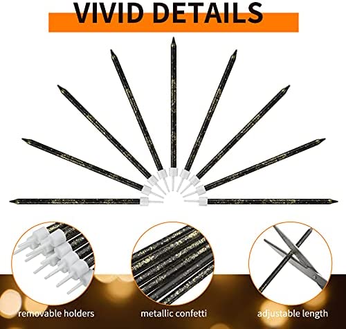 24 Pieces Birthday Cake Candles Long Thin Cupcake Candles Metallic Cake Toppers Candles for Birthday Wedding Anniversary Graduation Retirement Party Decoration (Black Gold)