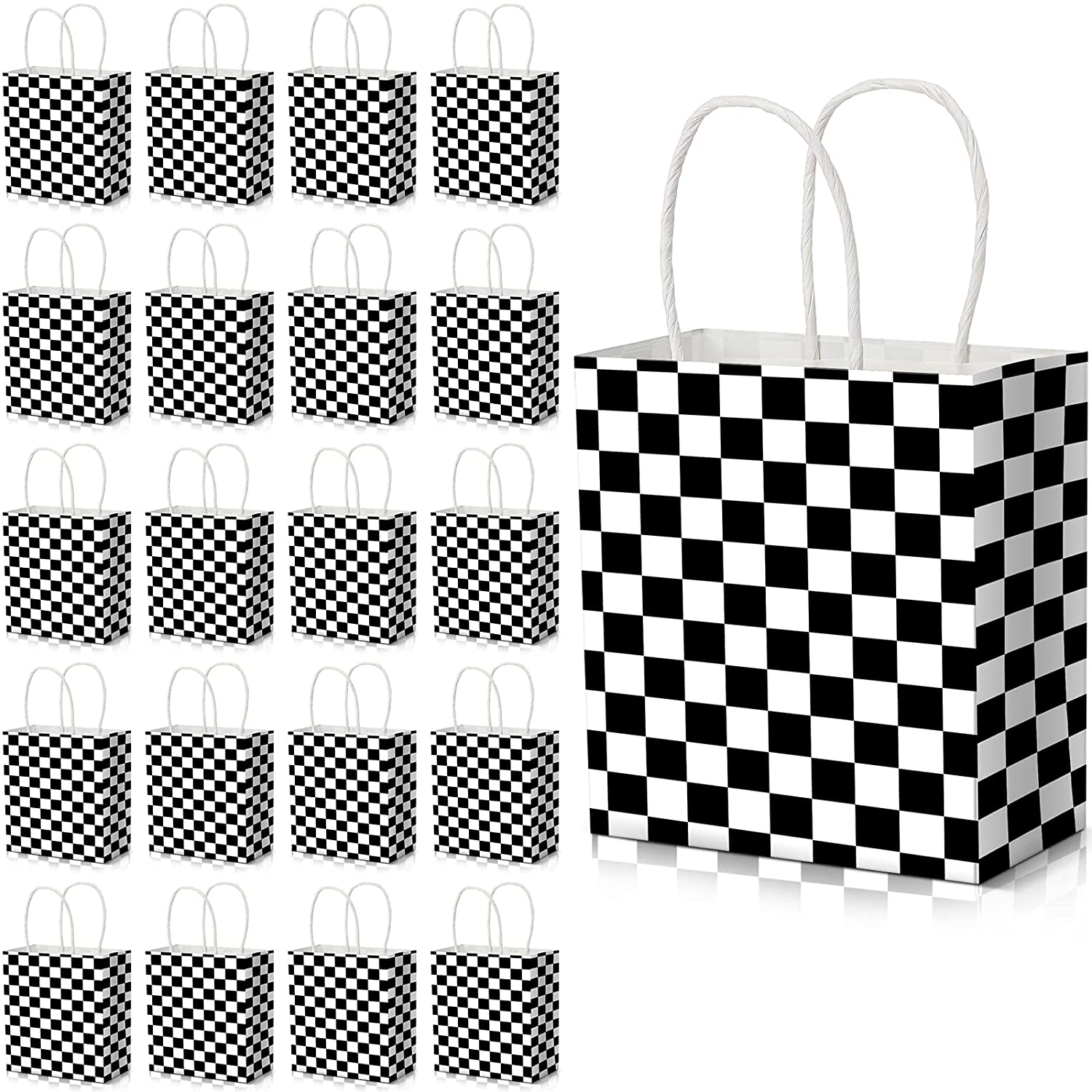 24 Pieces Checkered Party Bags Black White Race Car Favor Gift Bags Racing Compete In Speed Theme Party Favors Decorations Supplies, 5.9 x 5.5 x 2.75 Inches